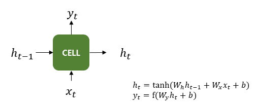 RNN(Recurrent Neural Network)는 sequence-to-sequence 학습에 효과적인 모델입니다. RNN 계열의 단일 셀의 기본 연산은 위와 같습니다.
