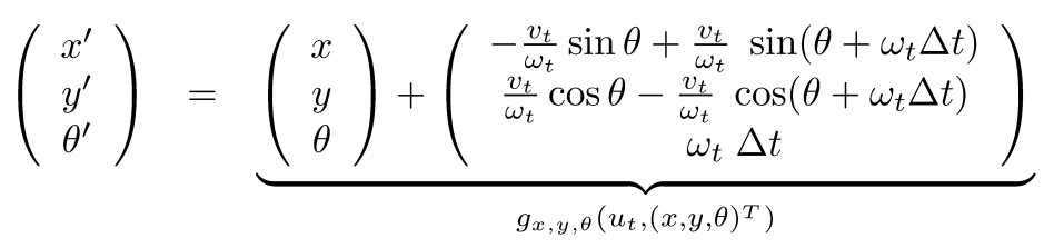 따라서 motion model \(g \) 의 Jacobian 을 구하면 Prediction step 완료됩니다.