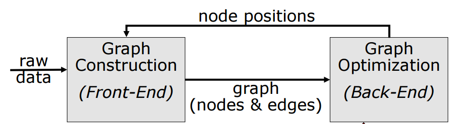 SLAM 공부할때 백날 논문을 읽으면서 이해도 되지 않는 내용을 머리에 때려박는것에 회의감을 느껴 실제 코드를 돌려보고 코드리뷰를 해보려합니다. SLAM이 Kalman Filter, Particle Filter을 거쳐 최근 Graph-based SLAM이 트렌드가 되면서 Front-end와 Back-end로 나뉘게 되었는데 Front-end는 Odometry Prediction, Backend는 Optimization을 담당합니다.