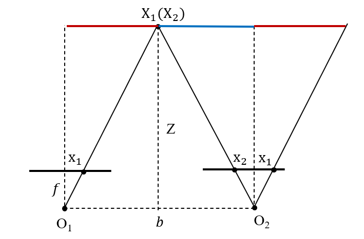 이미지에서 keypoint를 뽑는 이유는 map을 만들기 위해서도 있지만 2D point에서 3D point를 복원하고 3D point와의 relative pose를 계산해 Localization을 하려는 이유도 있습니다. 이 일련의 과정을 Triangulation 이라고 하는데 왼쪽 카메라와 오른쪽 카메라의 disparity(시차)를 이용합니다.