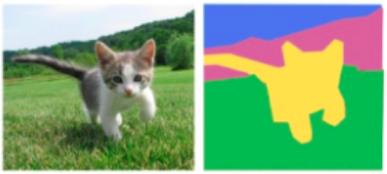 Sementic Segmentation 이란 위 그림(오른쪽)과 같이 이미지 혹은 영상 속 object들을 pixel 단위로 분류하는 classification 입니다. 일반적으로 Object Detection을 수행하면 각각의 object가 box로 구분되는 것과는 차이가 있습니다.