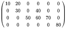 coo_list = [[0,0,10],[0,1,20],[1,1,30],[1,3,40],[2,2,50],[2,3,60],[2,4,70],[5,5,80]]